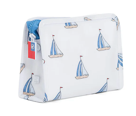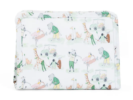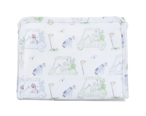 This pouch is the middle size of the Roadie trio. It features a wipeable coated cotton on the outside and a wipeable twill liner inside. Complete your TRVL set with the Large and Small roadies.