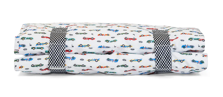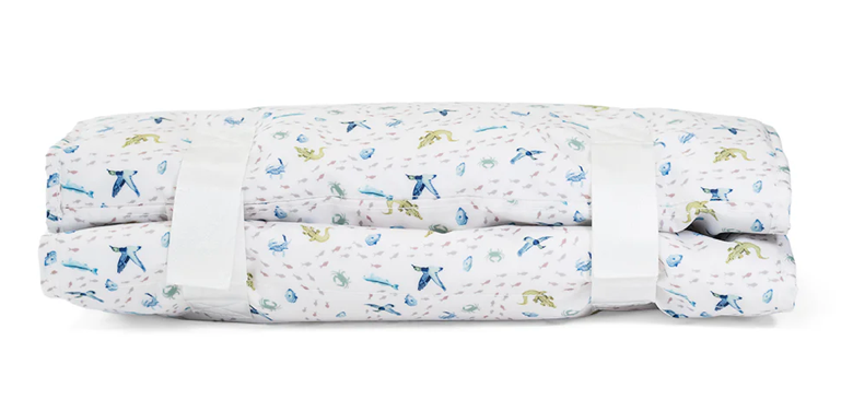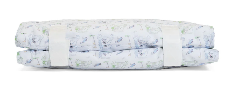 Built around TRVL's signature coated prints, their new nap mat provides a wipeable and antimicrobial exterior. The flip & fold design ensures the outer layer will never touch the interior pillow! Plus, it's easy to open and close for all ages. Each mat has a comfortable wide web shoulder strap for easy transport!