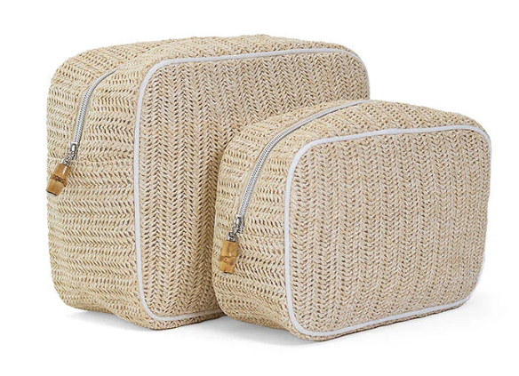 Meet the Straw Glam Collection. Available in both Go Glam and XL Glam sizes, these beautiful straw bags are designed to house your makeup, skincare, nail polish, jewelry, and more. Featuring a spacious open interior and a back wall slip pocket, they serve as the perfect catch-all to keep your essentials organized, whether you're at home or on the move.