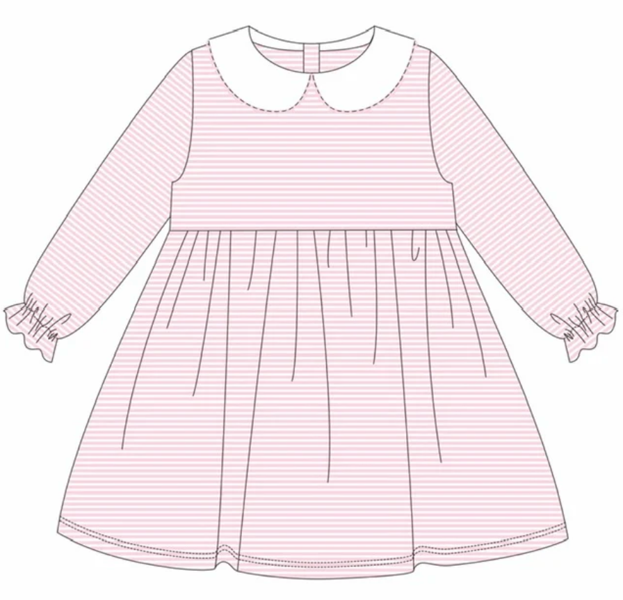 L/S Pink Stripe Peter Pan Collar Dress (Size 2T-8T)